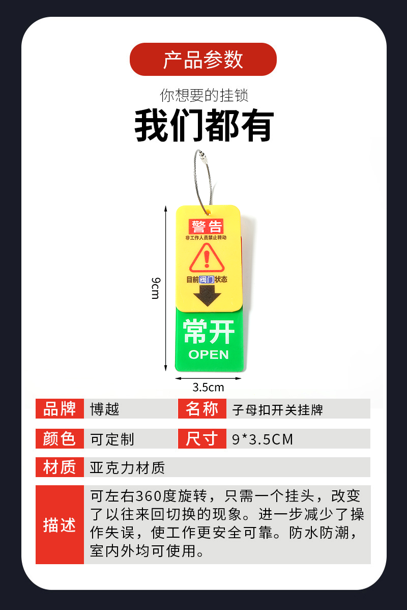 常開常關(guān) 子母扣開關(guān)掛牌